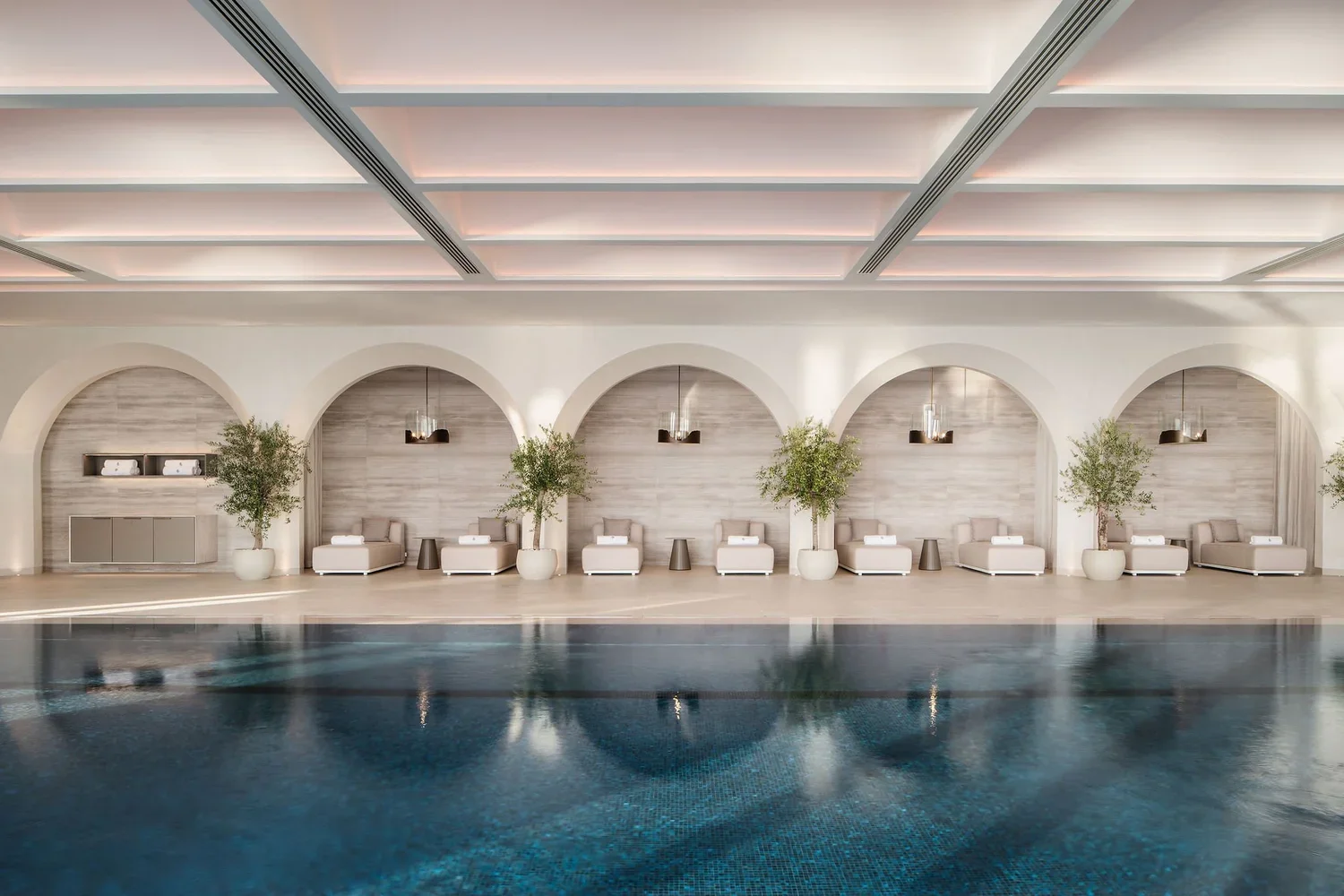 Architectural photography for Four Seasons Qatar, capturing the balance between natural light, mineral texture, and contemporary elegance.